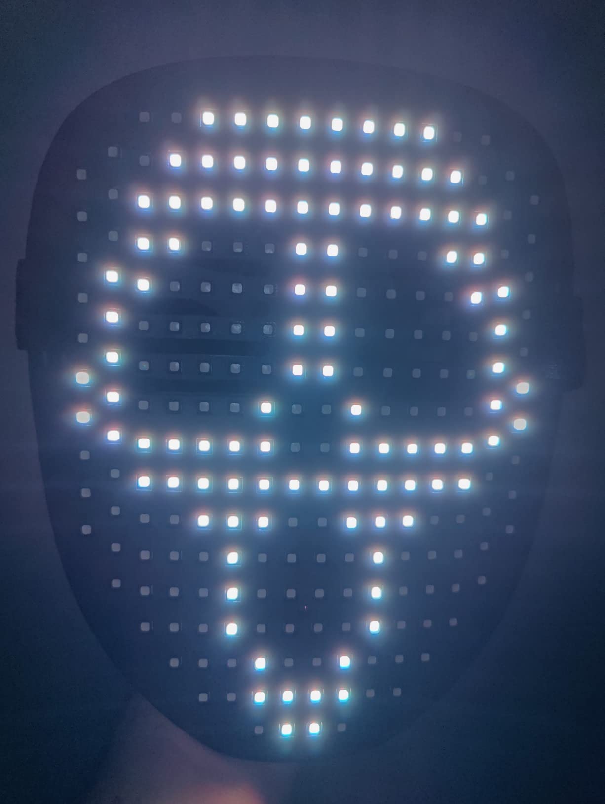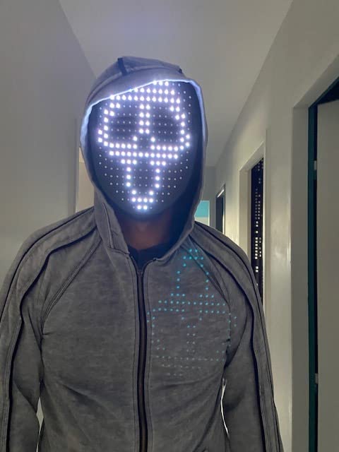 This mask is considerably less than half the price of the programmable ones - making it an ideal "one party" gimmick even if that is a bit environmentally unfriendly! On that note we'll start with the part I'm disappointed with even at this price - the animations are fast, with no music sync or ability to override their speed. It'd be jarring against music and lightshows and a bit concerning for anyone with photosensitive conditions at musicless events like parades or Civic Week. (Speaking of jarring check out the video - I make an idiot of myself trying to improvise while recording). While it's reasonable that the patterns are fixed and low-res (I like the low-res look) the animation speed doesn't feel comfortable and if they can be made just a touch slower that would be epic. Or better, make the gesture control into a tap tempo control... Gripe over! The mask itself is well made out of lighter plastics with a comfortable foam rubber eye guard - you benefit from the projected light while gazing through slits in the mask, but don't get blinded. It sits well away from your face so it's easy to breathe (or drink with a straw) and you could wear contact lenses though the eyemask goes get a bit humid even in an empty house - possibly a mini-sauna at a club. Fitting is a simple elastic strap with velcro hoops. It'll adjust very small for kids; for a bear-sized noggin it's at maximum loop size plus enough stretch to stay in place without discomfort. Holding it, I thought the size was small for "an adult face" but actually it's fine, you'll want a hood or similar to hide the gap anyway. The static patterns are cool, love the designs, though with the faces I wish it were possible to go backwards in the selection. That would make swapping sad/happy/angry/playful easier - as it is you have to rotate through them all and the gesture control is okay but it's not reliable. A couple of hardware buttons for up/down would have made such a difference here. Battery life is good, and USB charging brings up an animated battery display that frankly, I could use for social gatherings. I couldn't find any creative hacks for this model online as yet - but as a bank of addressable LEDs I'm sure there's a way for the determined. If you want your own patterns the same brand offers high-res video-capable models for less than this mask and typical hacking gadgets. If it were possible to swap expressions with more control I'd give this five stars, no hesitation - even if it were a USB remote accessory with faces on and only swapped those ones. Likewise if animations could be music reactive or BPM synched. As it is it's a four star mask that's a great deal of fun, simple and effective in the dark, but breaks the illusion if you want to get interactive with it. It's made me want more and want the better one!