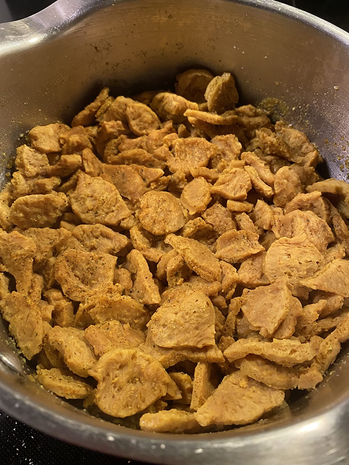 This is by far my favorite TVP! I rehydrate it in veggie broth and then season with onion and garlic powder, sauté in a non-stick pan and voila! Perfect texture and chew. Delicious every time!
