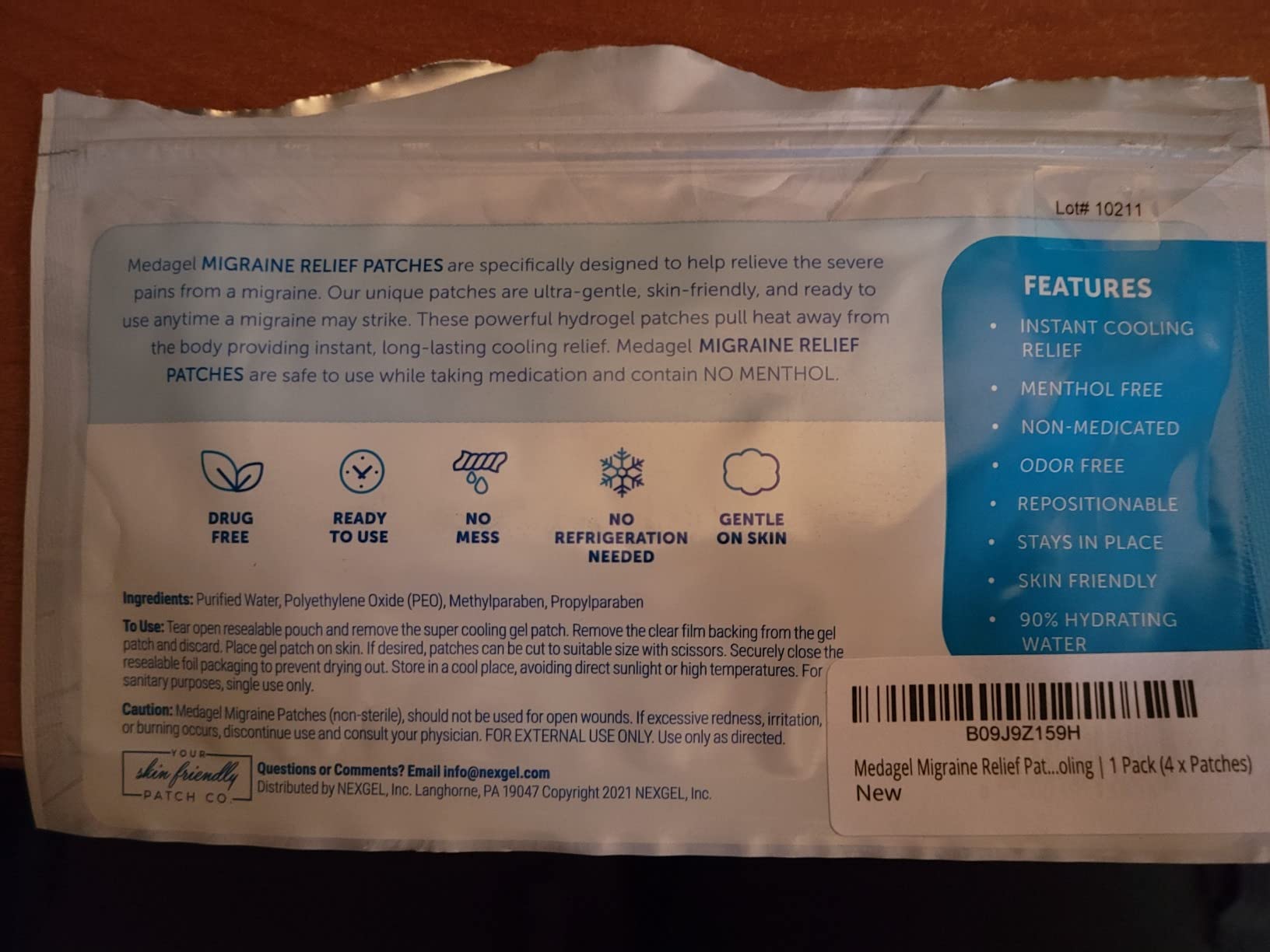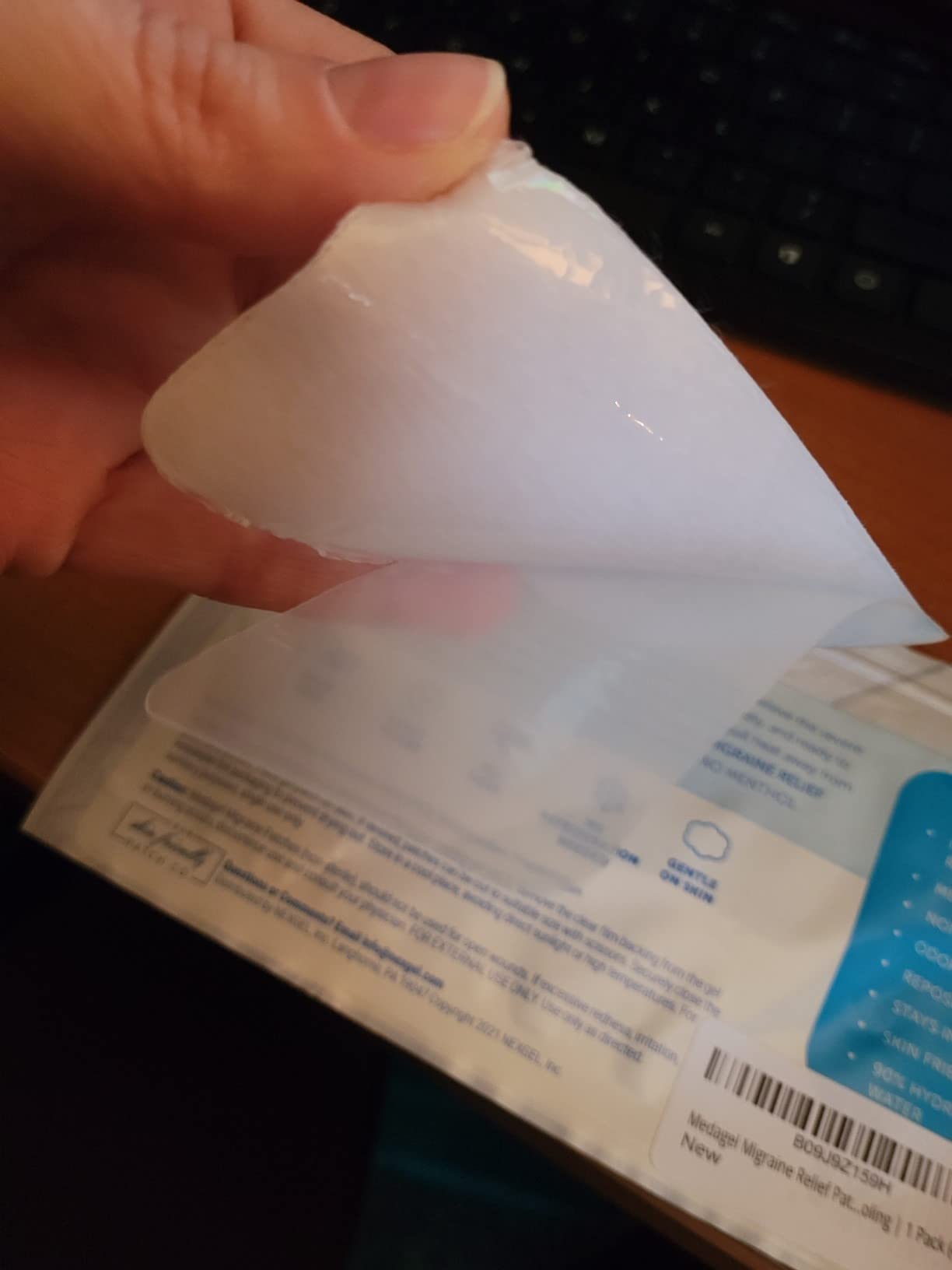 These migraine patches are so easy to use. My husband put the package in his nightstand for easy access when he has a migraine. You simply remove the plastic backing and stick the patch on your forehead. It instantly gives you a cooling sensation that helps alleviate migraine pain. The patch is a rectangle it goes across your whole forehead. Cooling effect is felt for about 20 minutes, it’s gets weaker as time goes on. These don’t have any scent which is really nice. It can’t “cure” the migraine for my husband but it makes him feel much more comfortable and it’s convenient vs the freezer headband things that you have to remember to return to the freezer!