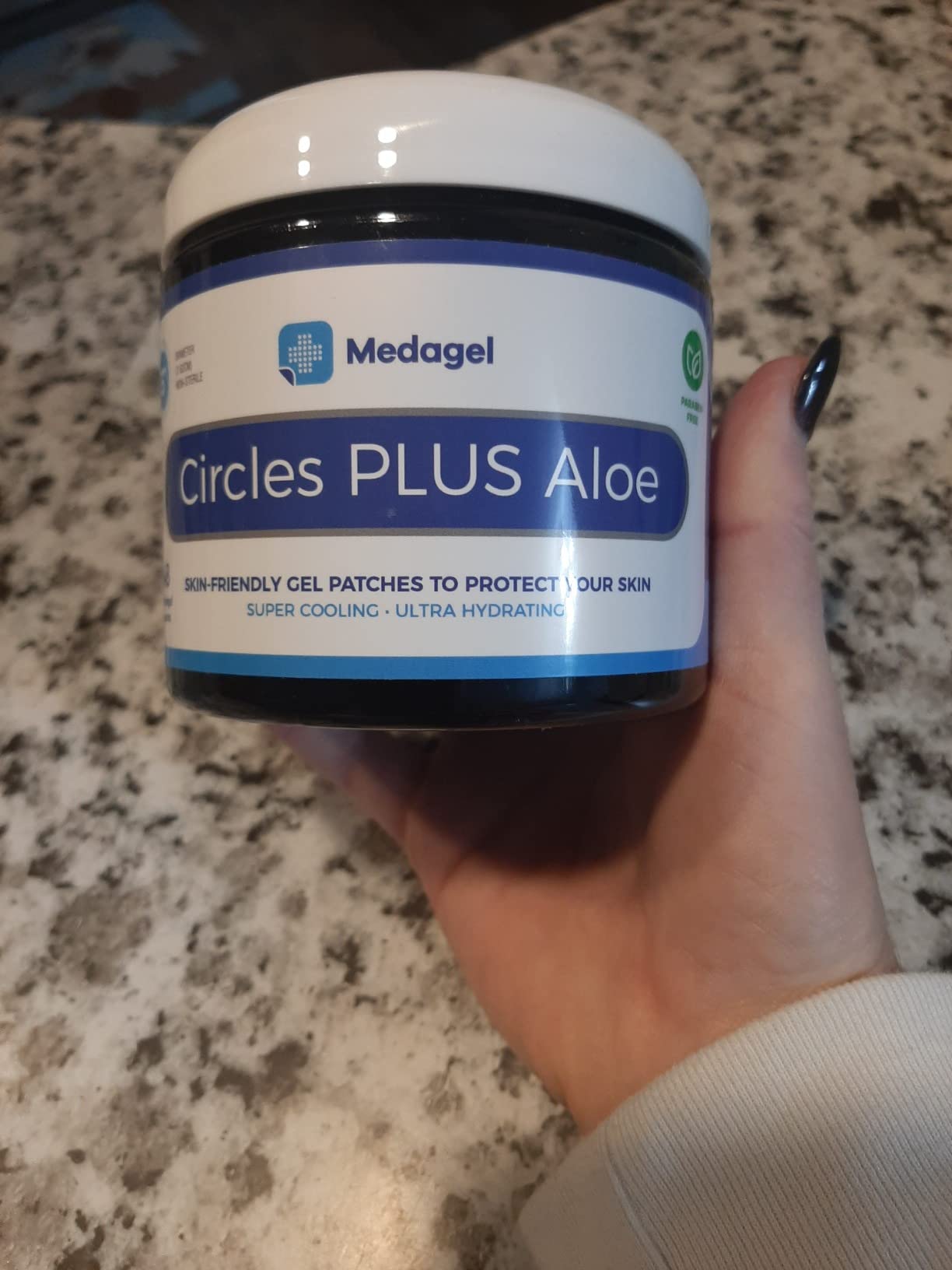 These hydrogel pads are amazing. I'm keeping this jar in my kitchen, because I burn myself more often than I'd like to admit. They are super cool to the touch, and stay feeling moist and cool long after it's applied. They can easily be trimmed with scissors to fit smaller areas. They stick well to your skin, but peel off very easily, pain free, when ready to remove.